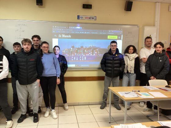 Après avoir rappelé le poids du transport maritime dans le commerce mondial et le développement accru du transport par conteneurs depuis les années 1970, les étudiants ont découvert à travers multiples photos et vidéos toute l’organisation de la vie maritime pour acheminer les conteneurs attendus, à bon port : la structure d’un porte-conteneur et ses cellules d’embarquement, le plan de chargement du navire, les divers aménagements opérationnels et les lieux de vie des marins, l’organisation du travail à bord, la vie en pleine mer, les manoeuvres au port, les opérations portuaires lors des escales, les lignes et routes maritimes empruntés, les points stratégiques comme le canal de Panama. Un vrai voyage autour du monde pour nos étudiants !